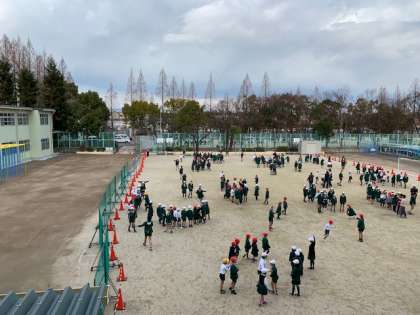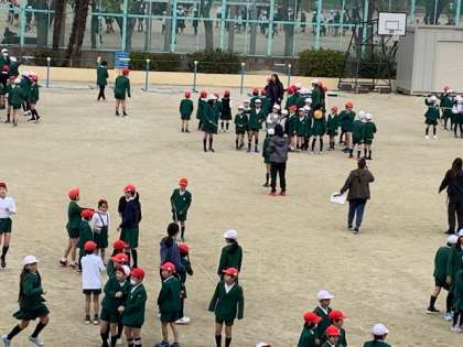 たて割り班でわんぱく遊びをしました。雨も上がってみんなで長縄を楽しみました。