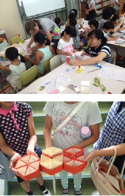 とても難しかったのに、なかには三角形を6つ組み合わせた六角形の小物入れを完成させた児童もいました。