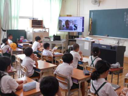 いよいよ9月に入りましたが、まだまだ暑い日が続いています。今日もTeamsを使って児童朝会を行いました。今月の生活目標は「正しいあいさつをしよう」です。校長先生から「言葉」についてのお話をしていただきました。