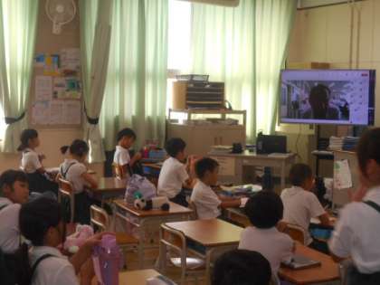 新しい1週間の始まりです。校長先生の声に続いて子どもたちの元気な挨拶が校舎内に響いています。今週もTeamsを使って児童朝会です。