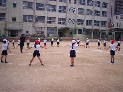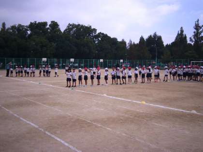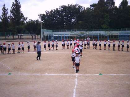 今日は、隊形の確認をし、運動場では自分はどのあたりに立つのか、どのように移動するのかを練習しました。