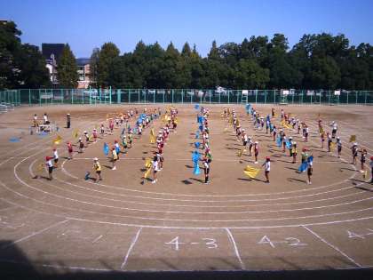 日々の練習を重ね、隊形移動もスムーズにできるようになってきました。また、曲に合わせてフラッグを上げたり下げたりするタイミングも合ってきました。