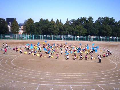 6年生は、運動会でフラッグを使った表現運動を行います。