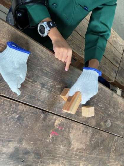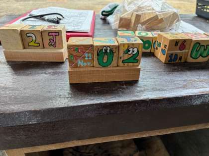 やすりで木切れをツルツルになるまで磨きます。明日はこの木切れにペイントをしてカレンダーを完成させます。