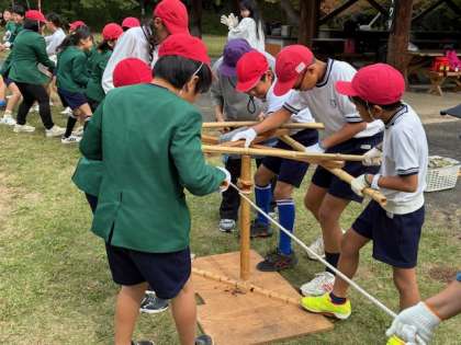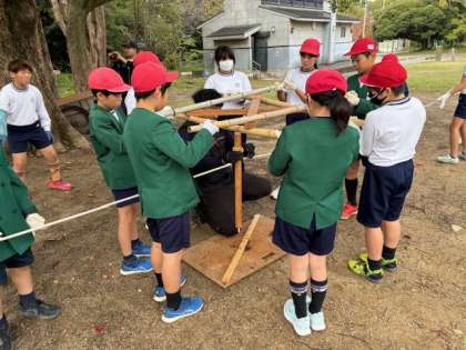 5年生 林間学習 お昼の活動をお伝えします。キューブカレンダー作りの後は、いよいよ火おこし体験です!