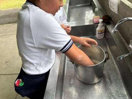 見事に火を起こすことができ、続いて野外炊飯にチャレンジです!