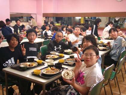 5年生 林間学習 お楽しみの夕食の様子です!