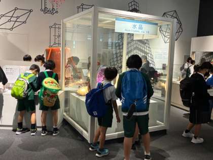 昼食の後は再び館内に入り見学を行いました。結晶や金属、宝石、鉱石など、ふだんなかなか見ることができないものがたくさんあり、子どもたちも夢中でみていました。