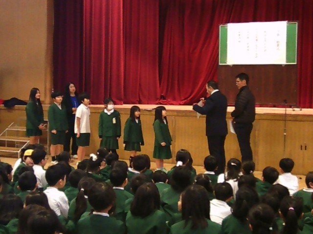 その後、生活指導についてのお話、読書感想画コンクールの表彰などを行いました。
