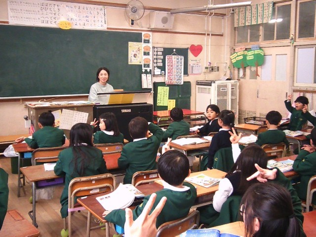 先生が、電子オルガンでメロディを弾くと、元気いっぱいの歌声が教室に響きわたります。