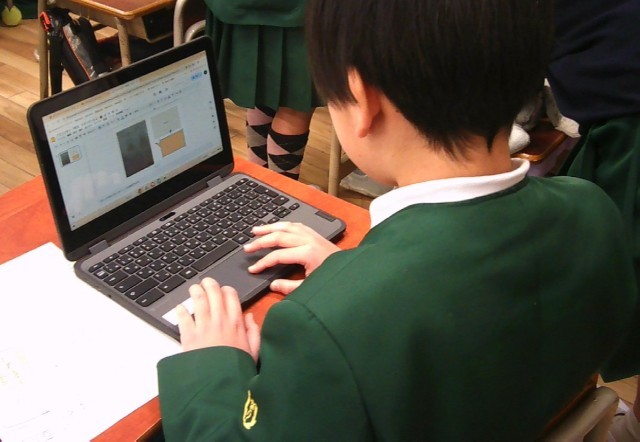 グーグルクラスルームを使って発表、交流を行う予定です。