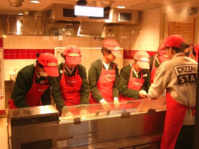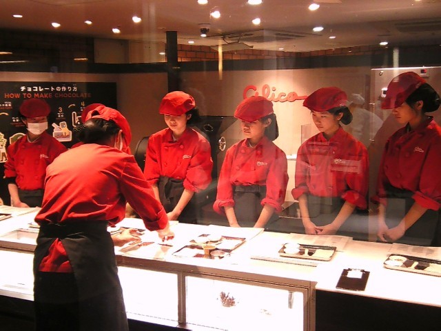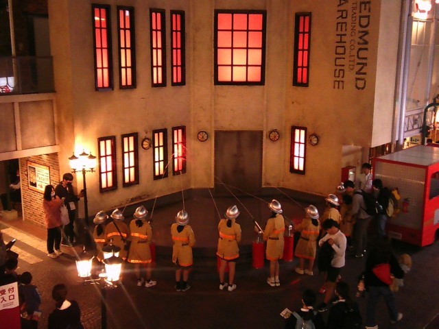 写真は上から、ピザショップ・消防署・街時計・チョコレート工房・配送業者・演劇の様子です。