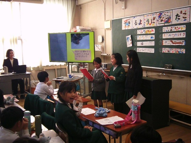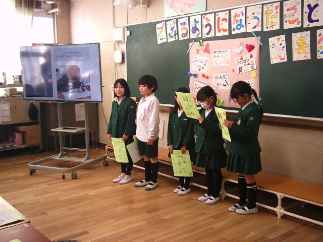 電子黒板に発表内容が大きく映し出されるので、見ていてとてもわかりやすかったです。