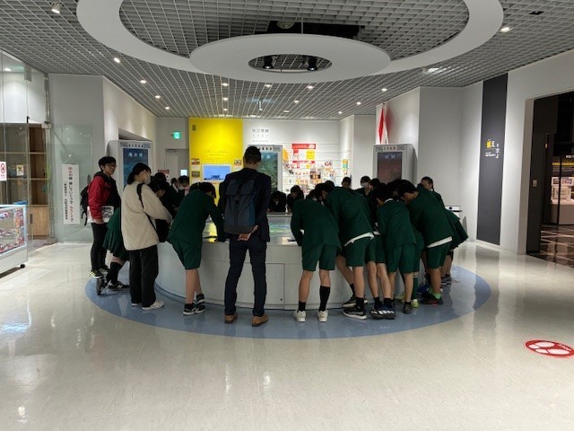 を行いました。またタスカルシアターでは、巨大なスクリーンで震災の様子を見て、普段からの避難訓練や防災訓練の