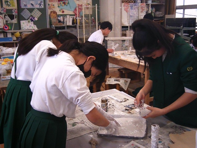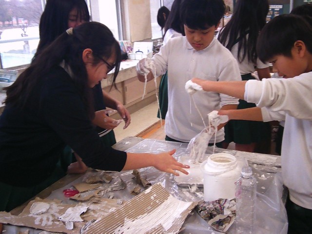 6年生は、液体ねんどを使って、「白くなったら見える世界」の作品作りに取り組んでいます。