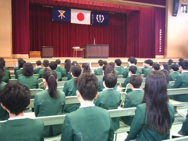 講堂には先に保護者や教職員が入り、最後に卒業生が入場してきます。