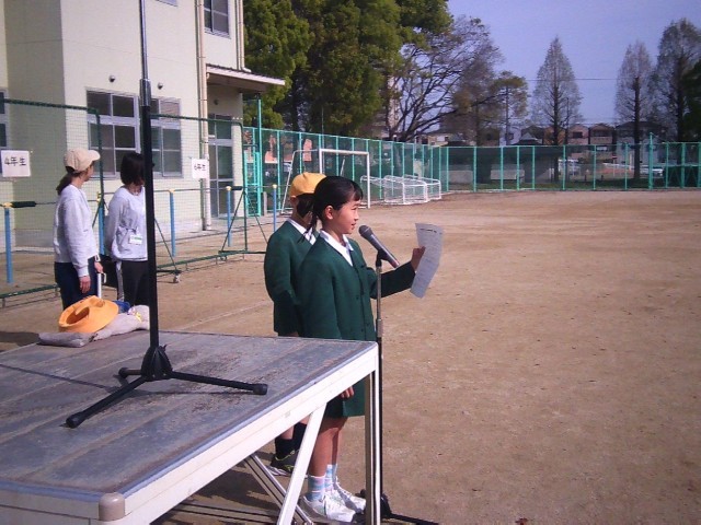 在校生代表が歓迎の言葉を伝え、全校児童593名が運動場に集まりました!