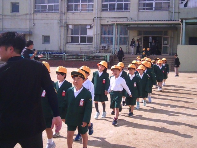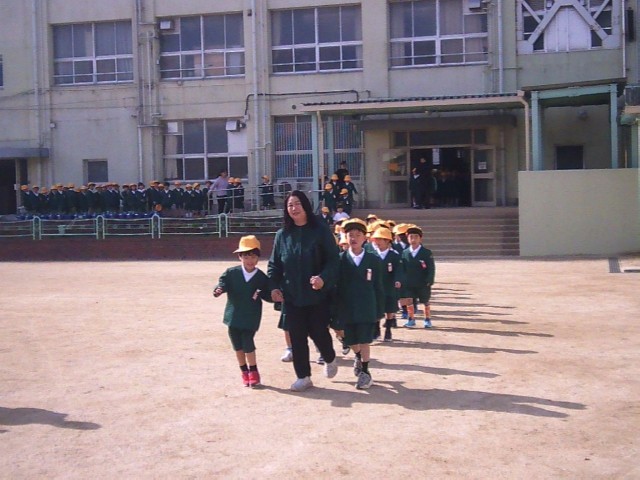担任の先生と共に1年生がみんなの前に入場してきて並びました。