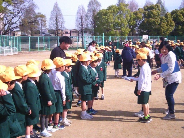 運動場に2年から6年生までが集まって並び、1年生との出会いに胸を躍らせました。