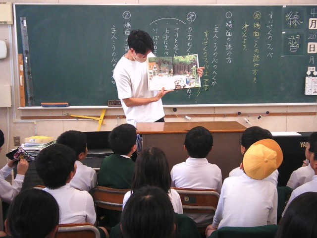 国語科の学習が終わった後、読み聞かせを行っていました。