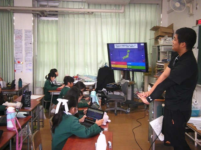 4年3組では、カフートを使って都道県クイズを行っていました。