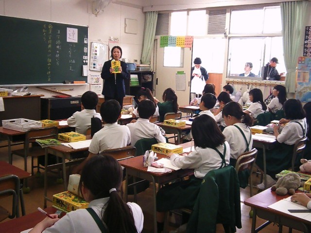 4年生の学習参観は、1組・2組が漢和辞典の使い方