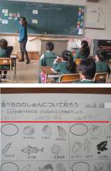 2年生の児童は、自分の経験を思いだしながら、たべもの紹介カードに書き込んでいまし...