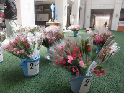 今年も、なにわ花いちばさんからお花のプレゼントをいただきました。今年は、カーネーションです。一人、一束持ち帰ります。