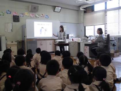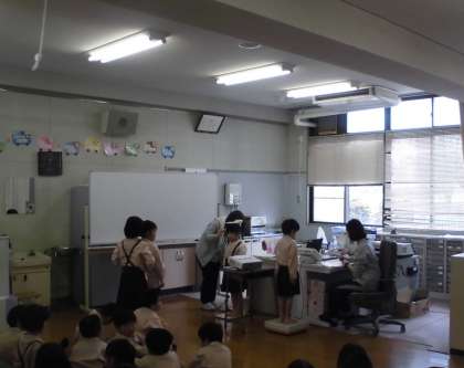 保健室の利用の仕方を教わった後、小学生になって初めての発育測定を行いました。