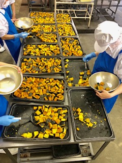 中央の写真は、焼きかぼちゃを配缶しているところです。