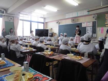 喫食後の児童の感想には、「カレースープスパゲッティがいい味付けで美味しかった!(6年生)」「おさつパンが柔らかくて美味しかった。(6年生)」等がありました。
