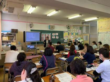 昨日は、教員の外国語教育研修会をしました。TST(鶴南ストーリータイム)講師の赤松由利先生から、今後の外国語教育の動向や、指導のポイントについてお話を聞きました。