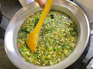 下段の写真は、スープにパセリを加え、仕上げているところです。