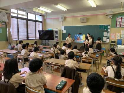 朝は「読書タイム」をしました。低学年の教室には、図書委員会の児童が絵本の読み聞かせをしてくれていて、子どもたちは身を乗り出して聞いていました。