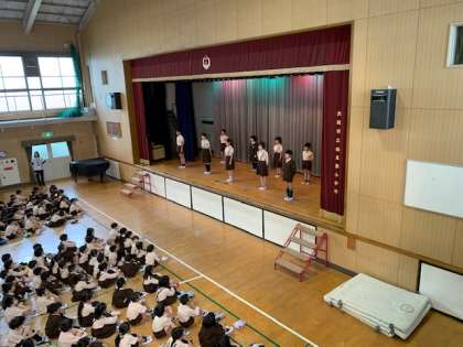 次に4,5,6年の学級代表が舞台に立って「楽しい行事ができるよう工夫していきたいと思います。」「より良い学校になるよう積極的に意見を出していきたいと思います。」等と発表しました。