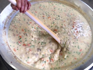 中段の写真は、コーンクリームシチューを煮込んでいるところです。