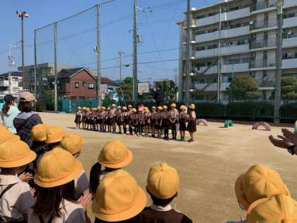 5月13日(月)五月晴れの週明けになりました。連休をはさんで久しぶりの全校朝会でしたが、8:30までには全校児童が整列して朝のあいさつができました。