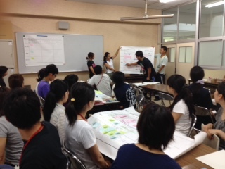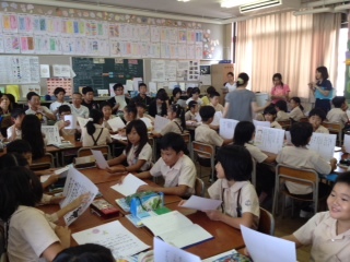 授業後に本校の教員で討議会をもち、詩の指導についてワークショップ形式で話し合いをしました。指導助言に来ていただいた京都橘大学の村岡益子先生からは、鶴見南の子どもたちの真剣な学習態度や、教員の熱心な指導についてお褒めの言葉をいただきました。