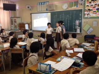 4年生ではこれまでに図書館で借りた詩集などで数多くの詩に親しみ、自分の好きな詩を見つける学習を重ねてきました。今日は国語の教科書の「よかったなあ」(まどみちお)の詩を音読した後、ペアで詩を完成させるというゲームをしました。子どもたちは一生懸命に、そして楽しく話し合って詩を完成させ、その詩を選んだ人が本の紹介もしました。