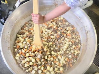 下段の写真は、肉じゃがを煮ているところです。