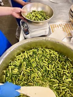 下段の写真は、グリーンアスパラガスのサラダを配缶しているところです。グリーンアスパラガスはカロテン(ビタミンA)やビタミンC、ビタミンE等、ビタミン類をたくさん含んでいます。