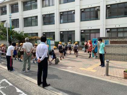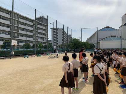 全校朝会では校長先生から「土曜日の避難訓練・親子下校がよくできました。今日は夏至を基準に数えると、夏休み前と同じぐらいの太陽の高さです。水分をよく取るなど体調に気を付けましょう。」というお話がありました。