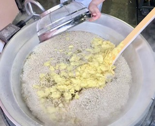 下段の写真は、すまし汁に湯葉を入れているところです。