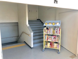 移動式給食図書コーナーは、4階の西階段の踊り場へ移動しました。