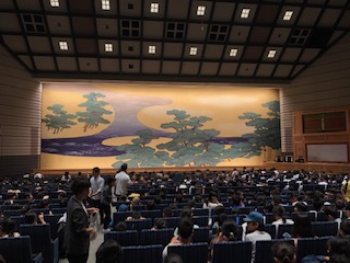 6月7日(金)6年生が国立文楽劇場へ文楽鑑賞に行きました。国立文楽劇場では、牛若丸と弁慶の『五条橋』や菅原道真が太宰府に流罪になった事件を背景にした『菅原伝授手習鑑』をみました。字幕やイヤホンでお話の解説を聞きながら、文楽を楽しみました。また、文楽の舞台の造りや人形の動かし方についてのお話も聞きました。文楽鑑賞の後は、近くの高津小学校でお弁当を食べました。