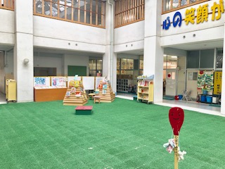 移動式給食図書コーナーは、1階のグリーンマットへ移動しました。