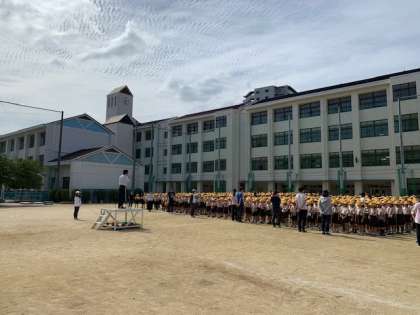 全校朝会はいつも通り8:30に運動場に整列してあいさつができました。校長先生からは「昨日の事件が解決できてよかったですね。家にいるときに緊急の知らせが入るときもあります。安全な行動が取れるよう気を付けておきましょう。今週はプール水泳学習が始まります。泳力を伸ばすと同時に健康や安全にも気を付けてください。また22日には夏至を迎えます。暑さにも気を付けてください。」というお話がありました。