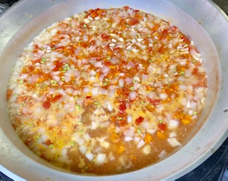 下段の写真は、出来上がったフレッシュトマトのスープ煮です。