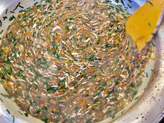 下段の写真は、マーボーはるさめを仕上げているところです。