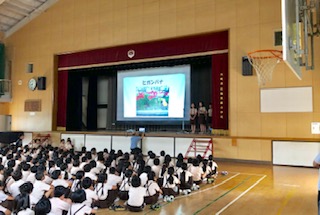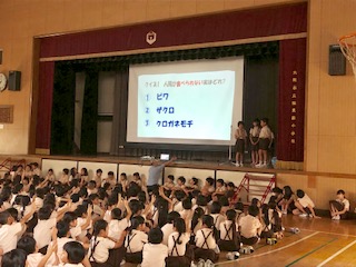7月11日(木)朝から雨になりました。児童集会は環境委員会が「鶴南グリーンマップ」というテーマで発表をしました。
